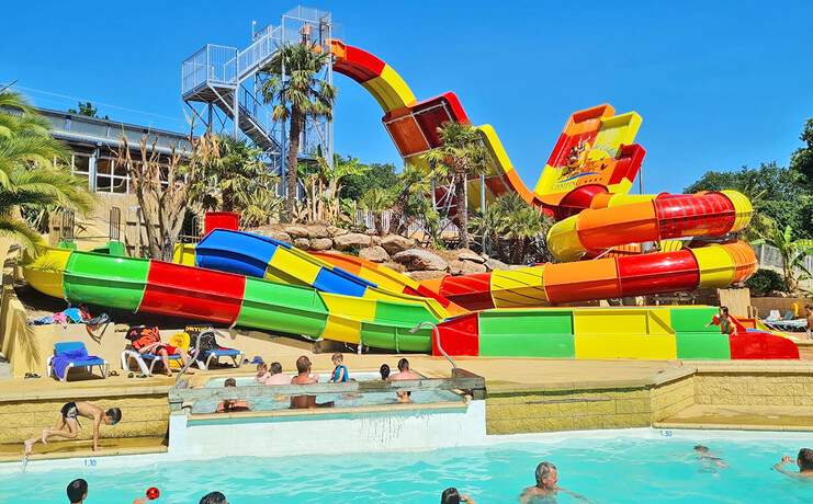 - Bel espace aquatique extérieur avec piscine, toboggans aquatiques (1 Tsunami à bouées, Pentagliss…) et pataugeoire pour les plus jeunes. Profitez d’un moment ensoleillé et de détente sur l’un des transats tout en surveillant vos enfants qui s’amuseront dans la pataugeoire qui leur est réservé.